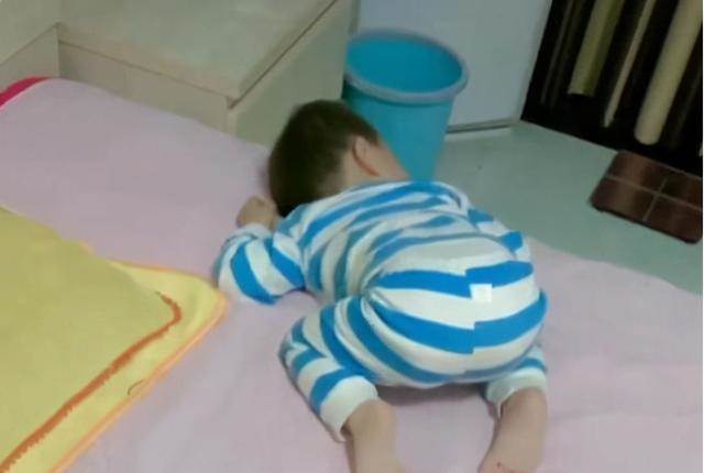 沒想到回來之后就拍下了這樣一張照片,寶媽摟著兩個女兒正在睡覺,兒子卻不見蹤影,后來寶媽才在床邊看到了兒子一個人像只小青蛙一樣趴著睡覺。