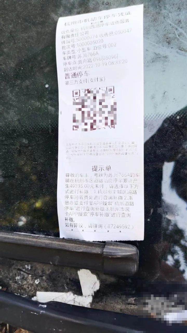 在擋風玻璃下方,記者看到了師傅10月19日上午8點半開的停車憑證,在憑證下方的「提示單」上寫著,這輛車牌開頭為蘇J的車輛,已經在杭州市區道路泊位停車累計產生49335元未付(約新台幣22萬元)。師傅攤了攤手,「車子是好車子,高配當年裸車得要七八十萬,辦完了要近百萬了!(約新台幣400萬元)太可惜了,我猜肯定是有原因的……」