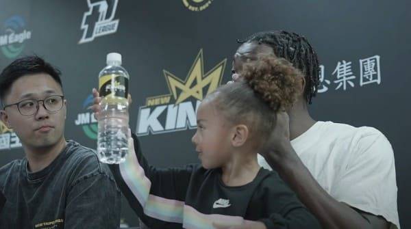 PLG職業籃球聯賽,新北國王洋將曼尼高,在上週出戰台新夢想家的比賽,寫下大四喜紀錄,賽後他的女兒也跟著父親一同現身記者會現場。