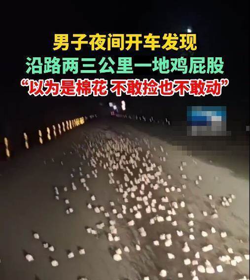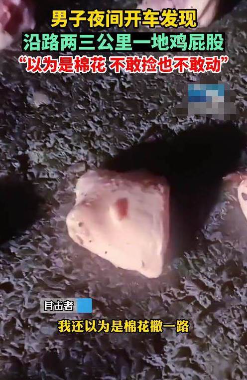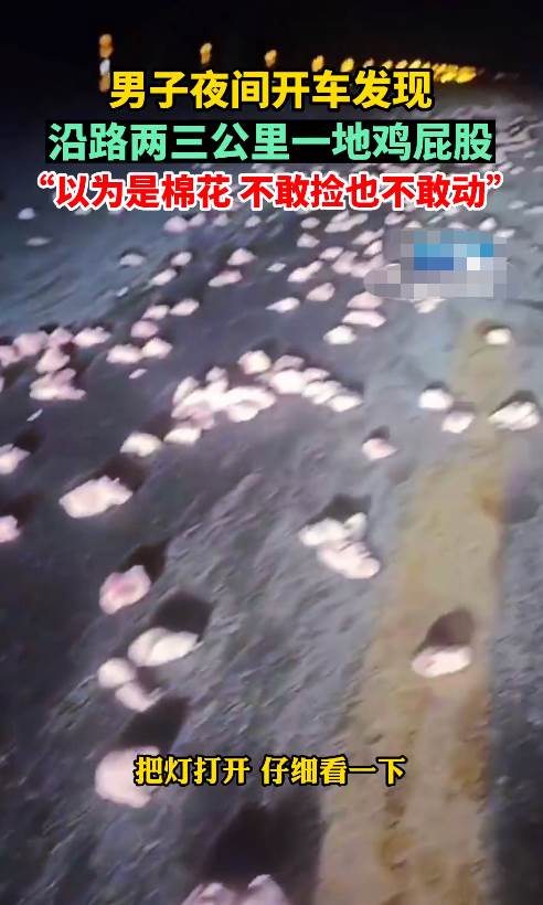 據該男子描述,自己原先以為是棉花撒一路,于是把燈打開,仔細看一下,發現全都是雞屁股。雞屁股「長龍」有兩三公里長,自己也不敢撿也不敢動。