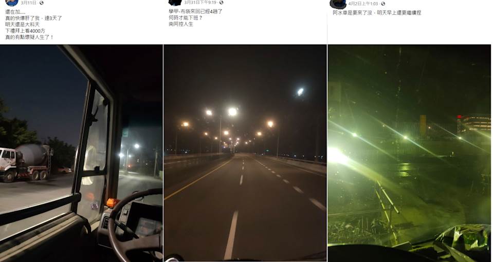 這位網友是一位混凝土預拌車駕駛,獨自一人賺錢共養妻子和兩個小孩,每個月除了要還貸款,還要負擔其他債務,只好接夜班打工賺錢。