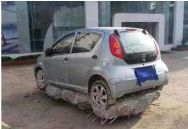 之前就有一位車位主人將亂停在他購買車位上的賓士汽車用強腐蝕性的液體進行了‘毀容’。