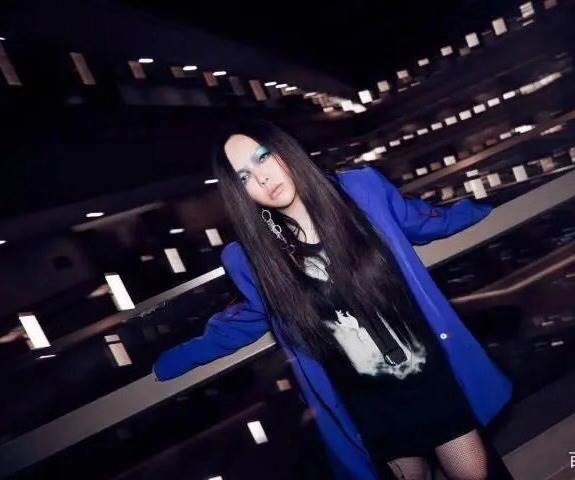 之後的阿妹一改舞臺上帥氣時髦的風格,穿上黑色絲襪搭配長款的藍色大衣,整個人性感十分,大衣的藍色是那種很亮的藍色,不僅突出了阿妹白皙的皮膚,還和周圍偏暗的背景尤為的搭配,加上藍色眼妝,這樣的阿妹簡直太美豔獨特了。