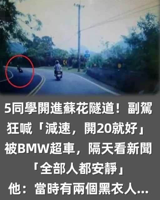 5同學開進蘇花隧道!副駕狂喊「減速,開20就好」被BMW超車,隔天看新聞「全部人都安靜~」他:當時有兩個黑衣人